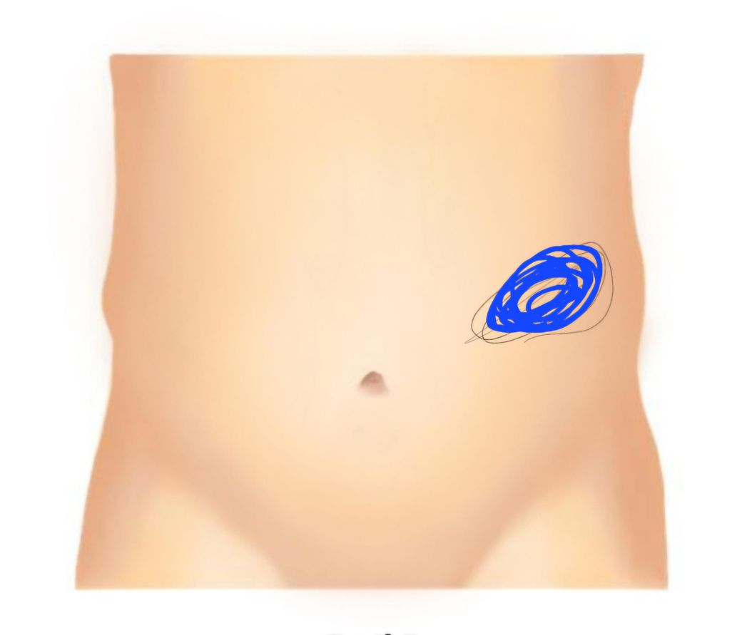 근데 화장실을 가도 살짝 묽게 나오고 안 시원 해요 또는 아예 설사를 할때도 있고 그리고 배꼽에서 왼쪽 살짝위(조금 더 정확한 위치는 사진에 표시했어요)에서 막 엄청 아픈건 아닌데 좀 찌릿 한 느낌이 들어요 그리고 배에서 끄르륵 거리는 소리가 자주나요