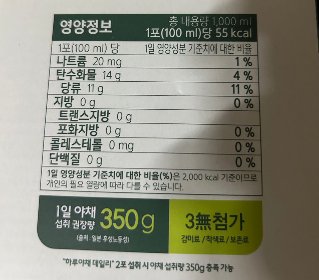야채주스인데 당류 11g면 당이 높은건가요?(사진 첨부)