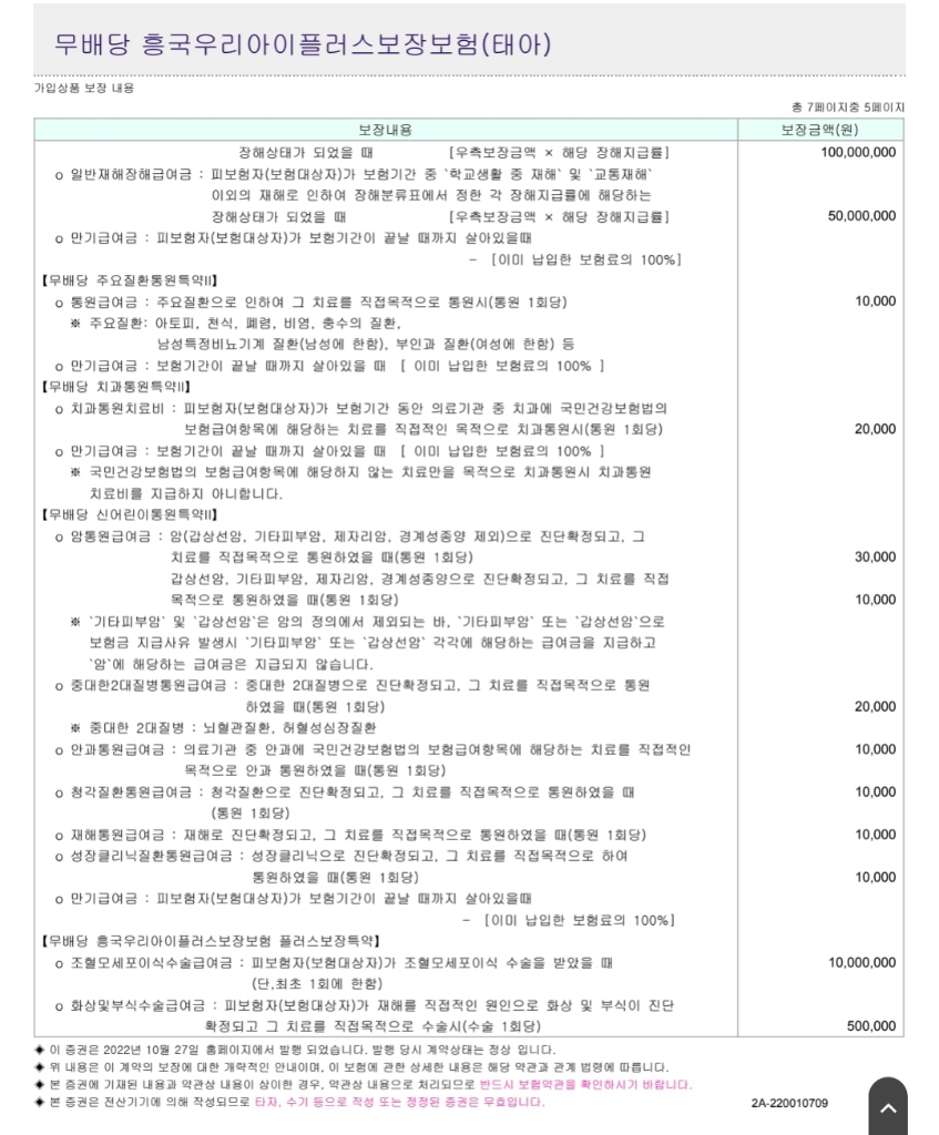 암진단비는 5,000만원이라서 탄탄한편이지만 유사암진단비의 한도가 낮은편이고