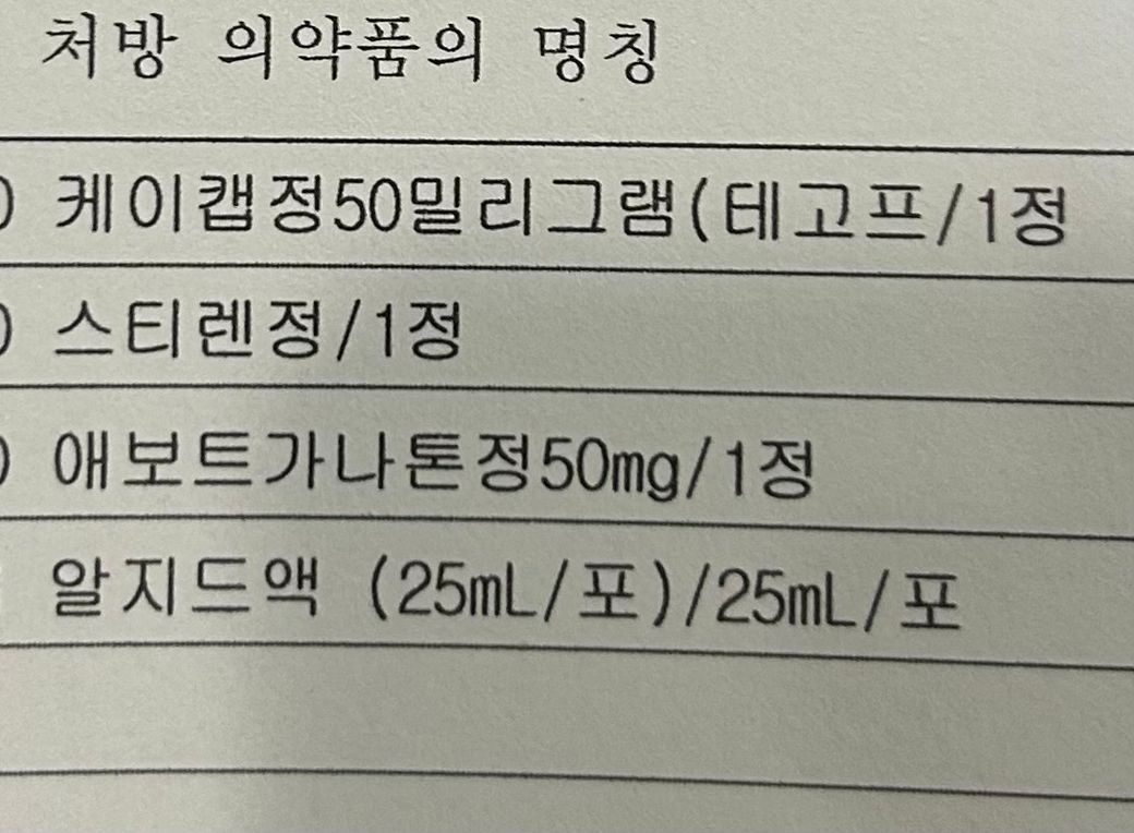 알지드액 말고 처방전에 써있는 나머지