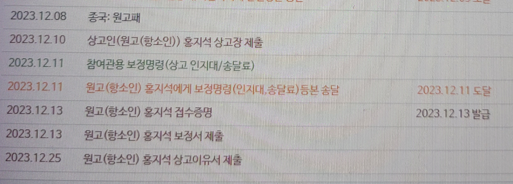 상고기록이 상고법원에 접수됐다는 것을 통지하는 절차입니다.