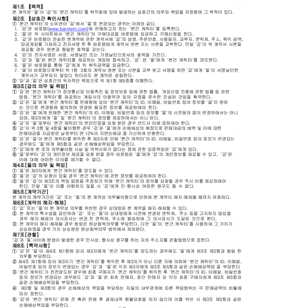 이를 피하기 위해 계정 매매 계약서를 작성하여 거래를 하고있으나