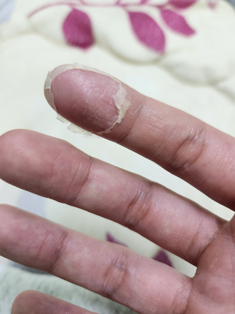 손습진의 가능성이 있으며 손피부가 건조해지면서 발생할수 있습니다.