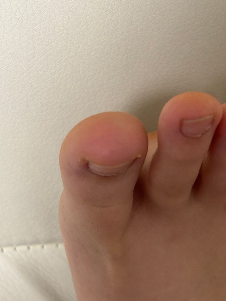 심한 상태는 아니지만 약간의 내성발톱으로 염증이 있는 것처럼 보입니다. 가까운 정형외과나 피부과 방문하시어 진료 권유드립니다.