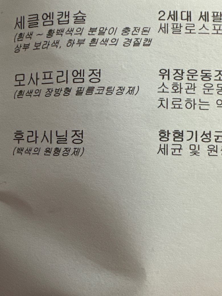 또한 사진에 후라시닐정이 포함되어있기 때문에 약을 복용하시는 동안, 그리고 약을 다 복용하고서도 3일까지는 금주하시는 것을 권장드립니다