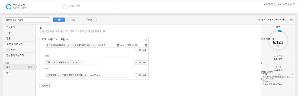 8월에 첫 방문해서 구매한 유저들이 9월에 얼마나 구매 했는가를 알아보기 위해서
