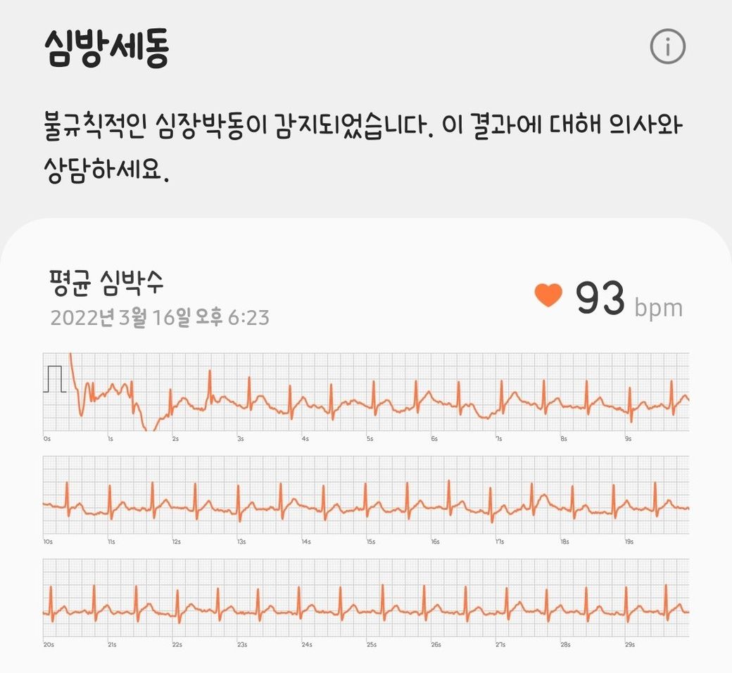 워치로 측정한 심전도는 신뢰도가 떨어지기는 하지만 증상이 동반된다면 병원을 방문해보는 것이 안전합니다.