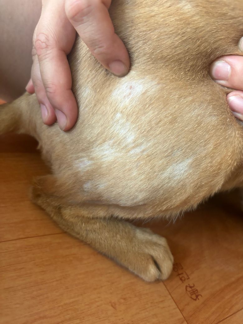 꼬리는 어느정도 잘 낮고있어요 수의사님들 덕분입니다☺️ 근데 어느날 부터 저희 아기 털이 이상하더라구요 땜빵이 나고 털 빠진 부위를 만지면 약간 딱지? 난것처럼 까슬까슬 해요 한번도 이런 적 없는데 갑자기 저렇게 되네요 스트레스 받아서 일까요 아님 어떠한 다른 이유가 있는걸까요? 병원을 가야할까요ㅠㅜ 먹던 사료도 그대로고 간식은 딱 하나 바꿨어요 그 간식 때문에 간지러운 걸까요?