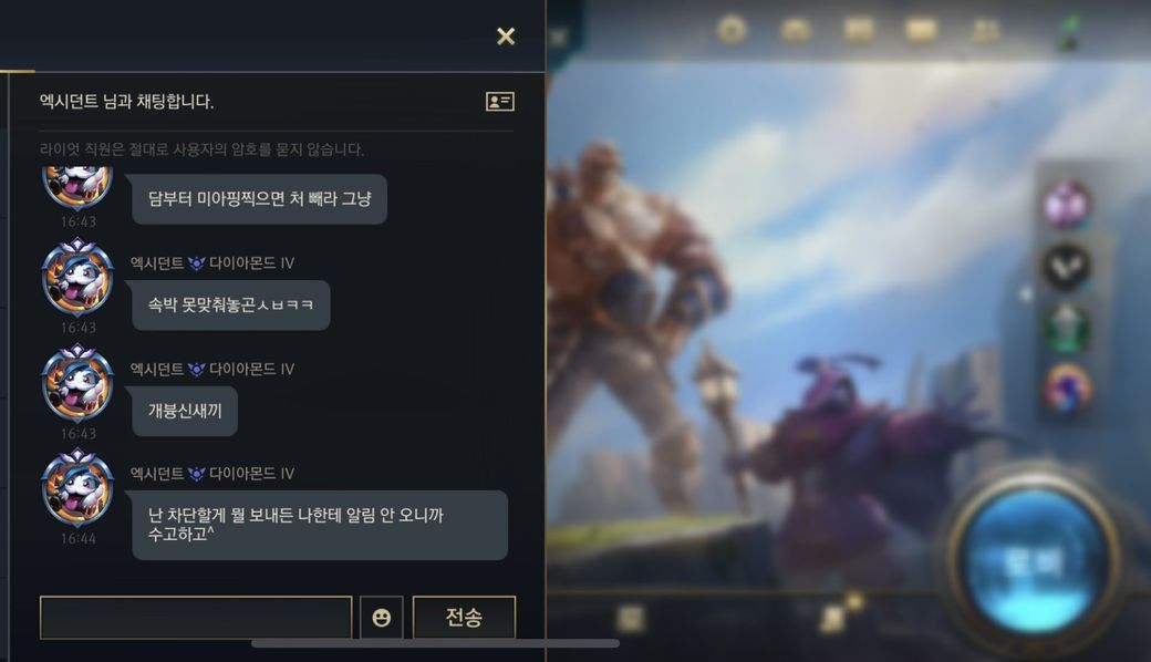 게임이 끝나고 이런식으로 먼저 욕설이 왔고