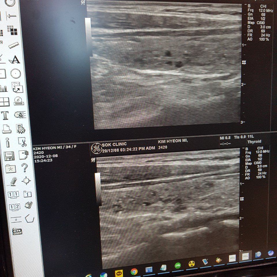 와이프가 체중도 급격히 빠지고 해서 병원에서 갑상선 초음파 검사를 했습니다.
