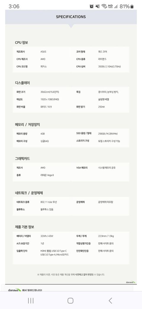 AsUS Laptop 15 D509DA-BQ00 노트북이고요 위사진이 노트북스펙입니다 가격을 어느정도로 측정해야할까요? 2020년에 나온제품이고 지금은 단종됐습니다