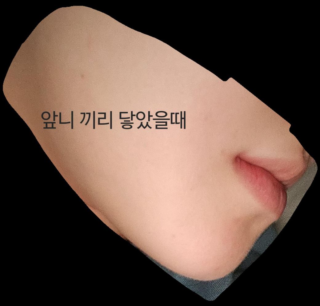 마지막 사진은 앞니 끼리 닿았을때 모습입니다.