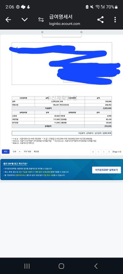 야간일이고 아무리 세금떼도 수당 다 포함한게월급이 너무 적은게 이상해서요