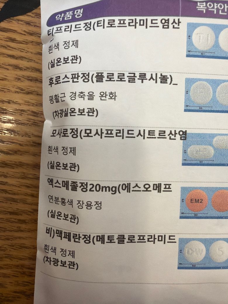사진으로 첨부해주신 소화불량 처방약의 성분들은 경구피임약인 머시론과 함께 복용하셔도 서로 문제가 되는 약물-약물 상호작용을 일으키지 않는 약들입니다. 따라서 머시론 복용 중에 처방약을 복용하셔도 괜찮으며, 머시론정 복용으로 인한 피임 효과에도 영향이 없습니다.
