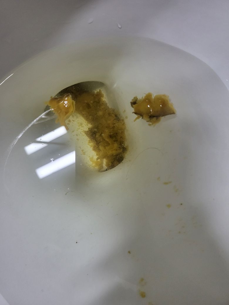 아침에 일어나서 대변보니 흰색 나풀거리는식으로 변이 있었습니다.