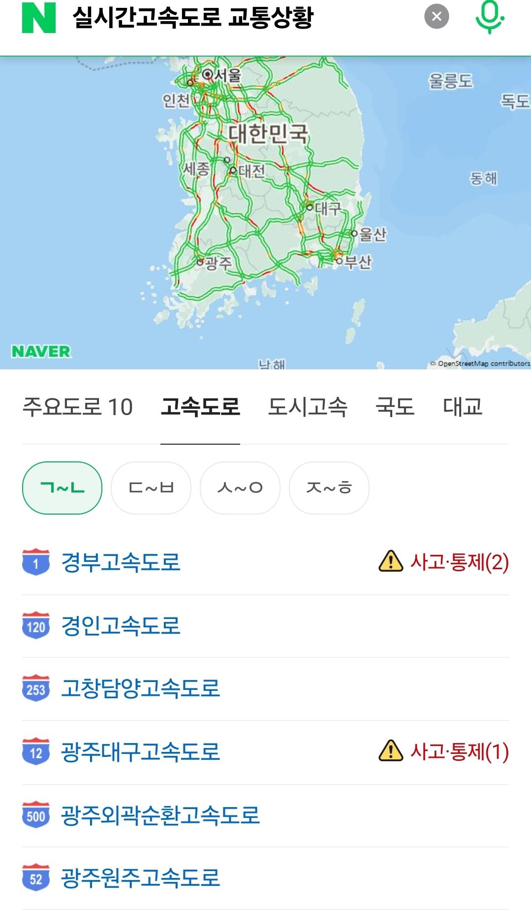 고속도로 실시간 교통 상황 검색하시면 지금주행중인 도로의 상황알수 있으십니다.구간별 CCTV화면으로도 볼 수 있으니 참고하세요.사고 통제 상황도 알 수가 있습니다.