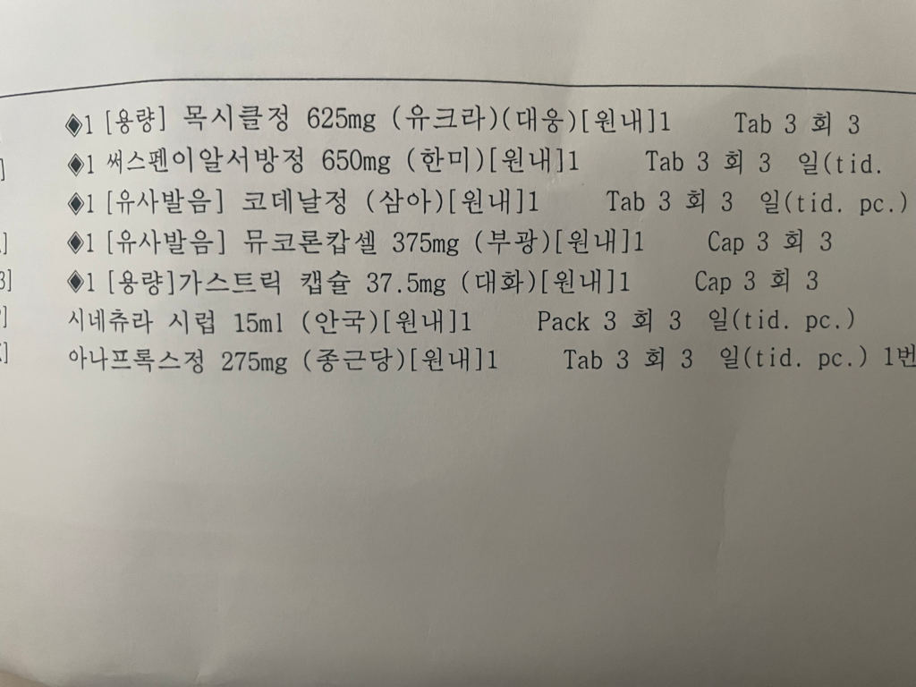 문의주신 사진의 약들과 자나팜정은 서로 성분이 중복되거나 상호작용이 있지 않기에 함께 복용을 하셔도 됩니다. 위장이 약한 경우 감기약들은 식후에 복용을 권장드립니다.