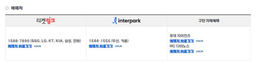 팀별로 예매처가 다르며, 현재도 로그인을 통해서 예매가 가능합니다.