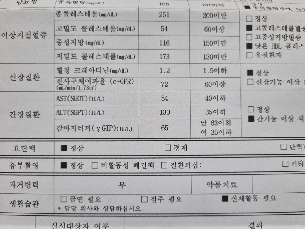 건강검진 결과중에 간수치관련으로