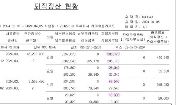 건강보험 pdf 파일과 고용보험 pdf 파일의 공란은 타 근무자(퇴사자) 인적사항이 들어있어 부득이 하게 수정하였습니다.