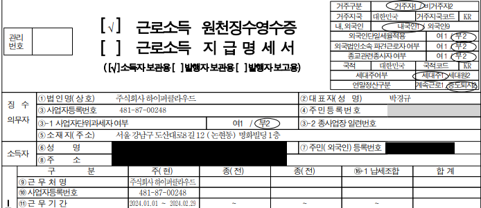 건강보험료의 경우, 마스킹된 부분을 참고하시어 - 표시가 되어 있지 않은 금액은 보험료 환수가 이뤄지게 됩니다.