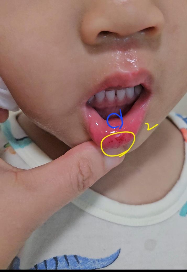 어제 그네를 타다가 턱쪽으로 떨어지면서 2번 부위가 약간 상처가 나서 피가 났다가 금방멈췄어요