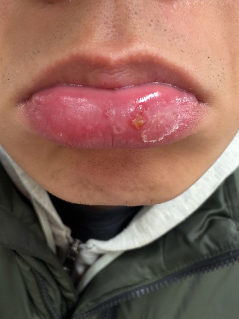 사진상 입술에 노랗게된 부분이 너무 아픈데 이거 구순암처럼 심각한 병인가요? 어떤 상황이고 어떤 해결이 필요한지 도와주세요 그리고 립밤이랑 립크림을 매일 발라야하나요?