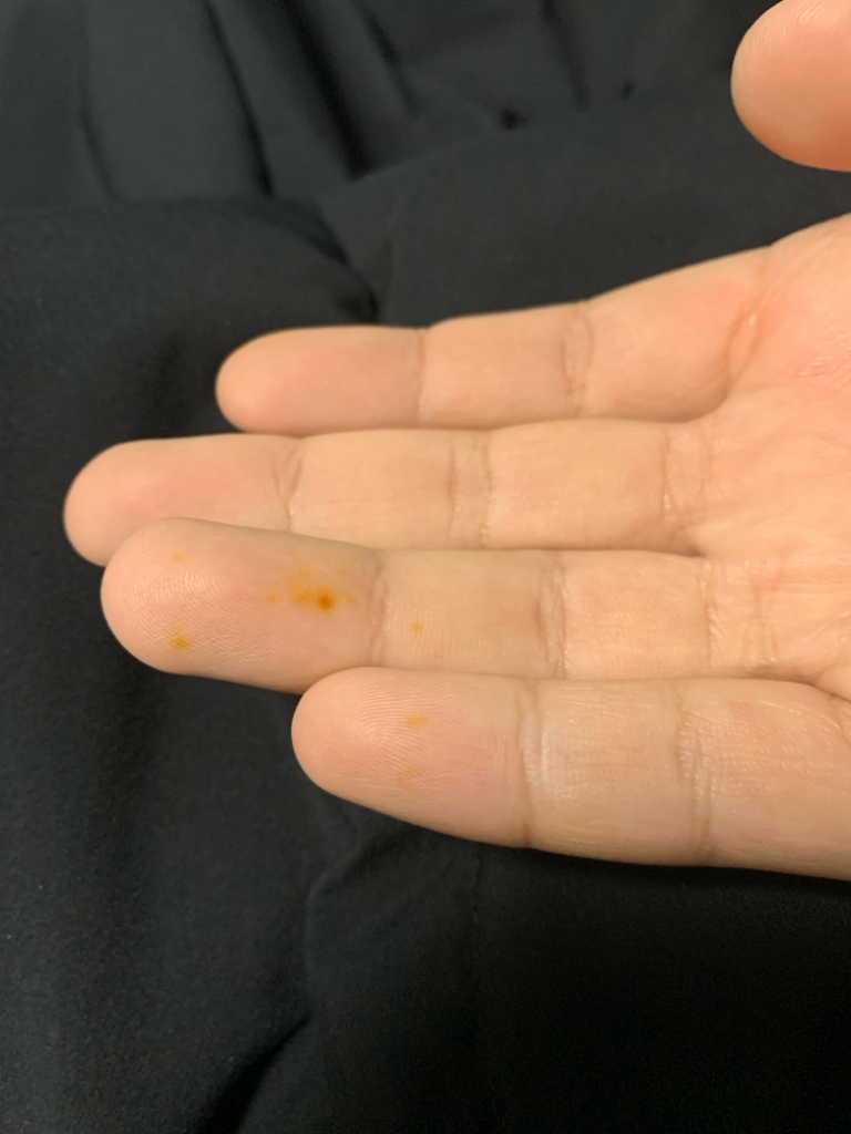 화학물질을 만진적도 따로 없고 손바닥이라 햇빛이나 광선에 노출될일도 적은데 자고일어나니 손바닥에 갈색 얼룩이 생겼습니다. 돌출 되있지는 않고 얼룩만 져있습니다. 혹시 피부암은 아닐까요?? 손을 계속하여 씻고 티슈로 문질러도 지워지지 않습니다. 발생한지 4일 지났습니다.