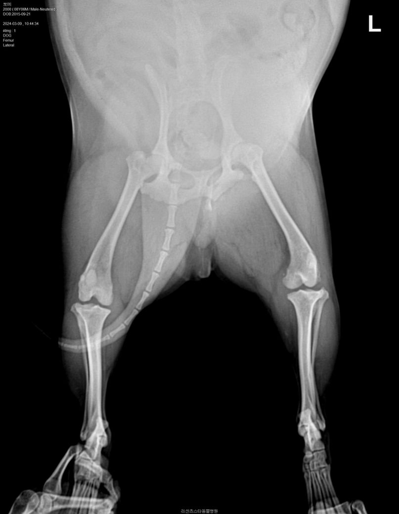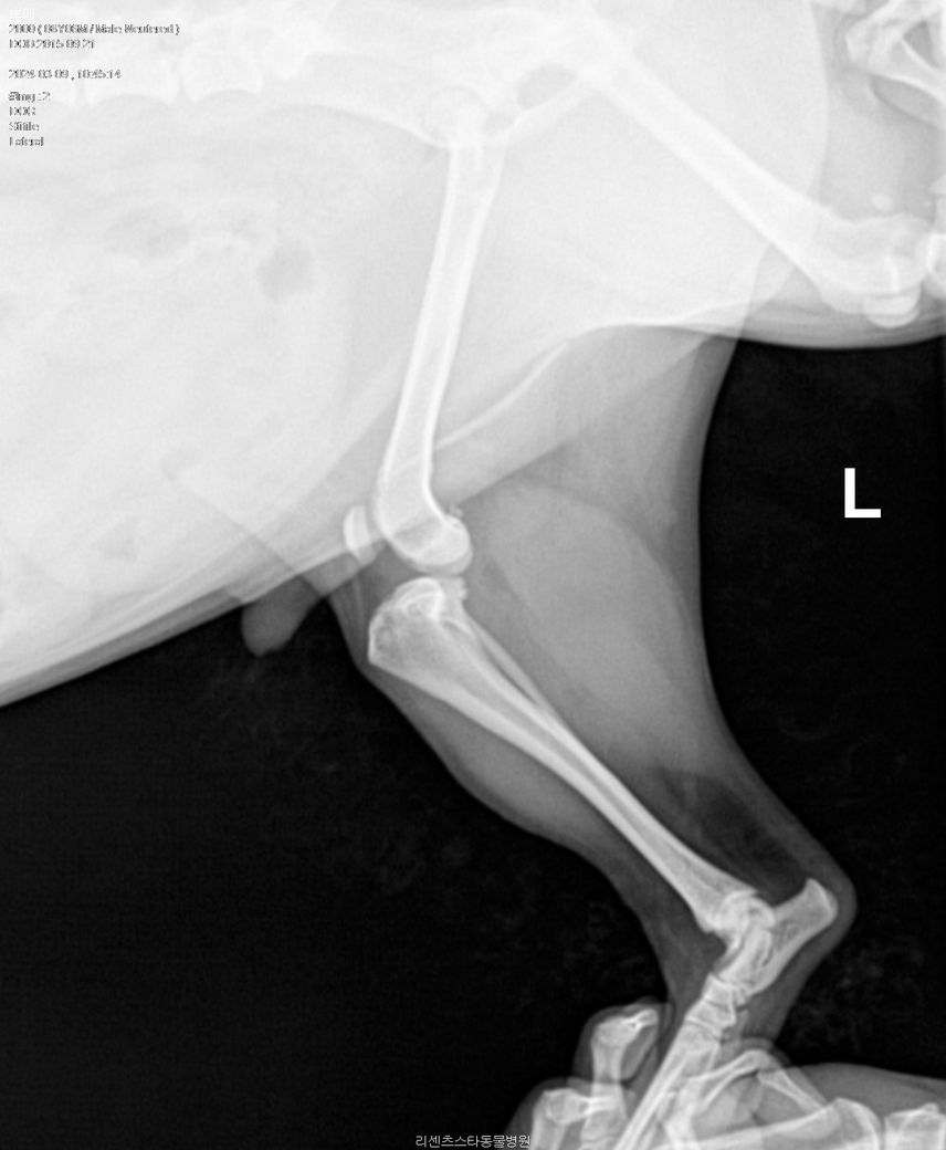 아픈 쪽 다리는 왼쪽 뒷 다리(L) 사진입니다