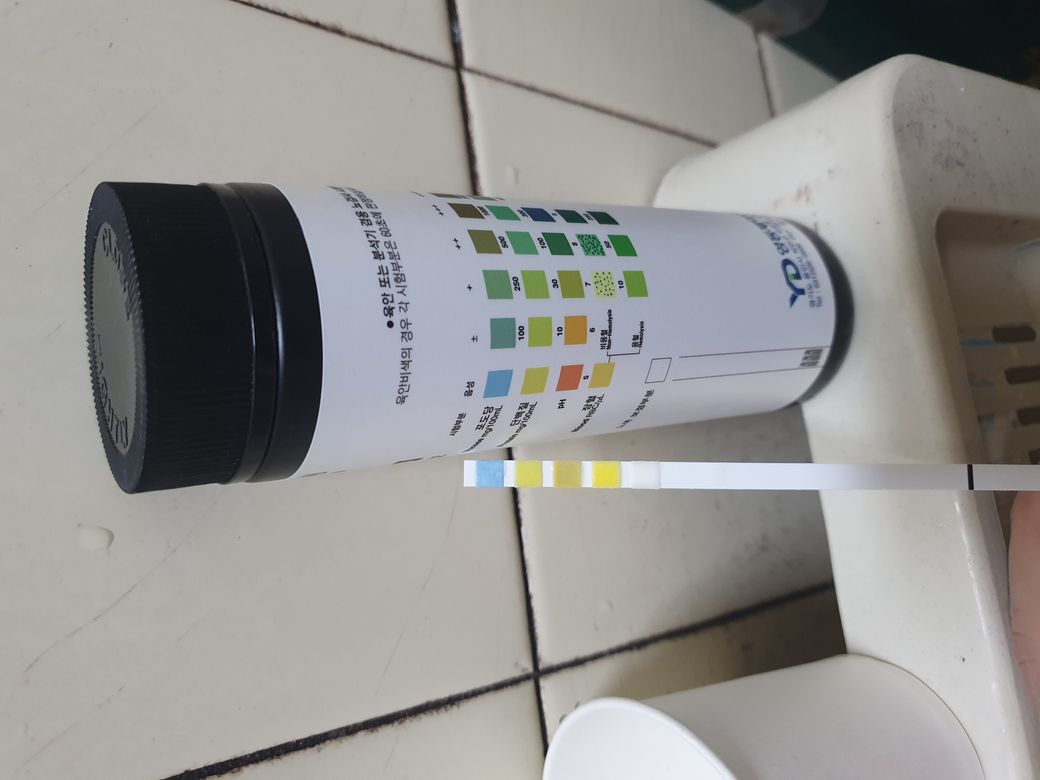 오늘 소변스틱 결과지와 지난주 검사 기록지입니다.