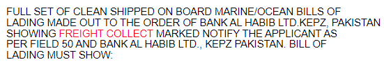 2. 그리고 L/C상 아래와 같이 Freight collect 로 표기하라는데 그냥 저렇게 표기하면 되는건가요?