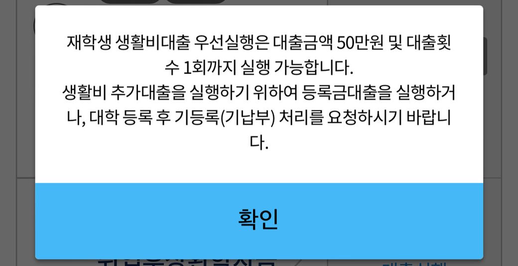 대학 등록금을 다자녀 장학금으로 납부처리 했는데도 생활비대출이 불가능한 이유는 뭔가요?