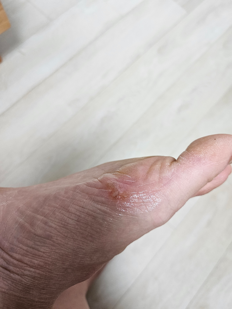 올려주신 사진 속 병변은 적어도 무좀 소견은 아닙니다. 통증이 있다면 인근 피부과 진찰을 받아보시기 바랍니다.