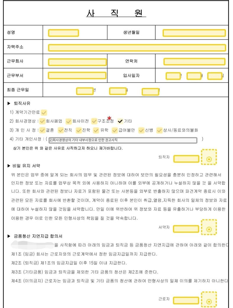 사직서 온라인양식이 있는데 이렇게 적어도 실업급여 받는데 문제되진 않을지 검토좀 부탁드립니다 ㅠ