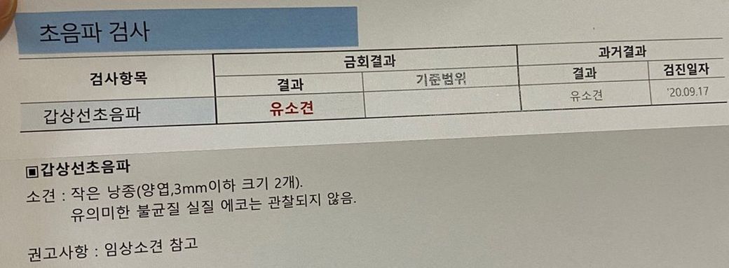 갑상선 낭종 유소견 관련하여 문의드립니다
