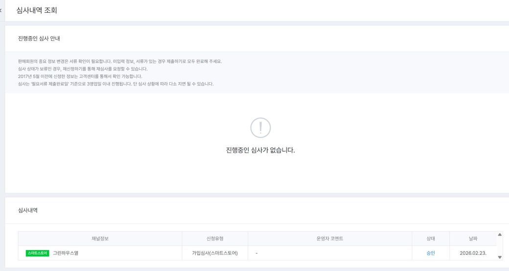 현재는 심사가 끝난 상태라서 "구매안전서비스 이용확인증"을 바로 다운로드 할 수 있는 메뉴가 보이지 않는 겁니다. 증명서는 심사 승인 후에 발급되는 문서인데요. 스마트스토어 센터 - 판매자 정보 관리 - 구매안전서비스 이용확인증 메뉴로 들어가보세요. 심사내역 조회 화면에서는 다운로드 버튼이 없고, 판매자 정복 관리쪽에서 따로 있을겁니다. 만약 메뉴가 안보인다면 승인일인 2026년 2월 23일 이후 하루 정도 반영 시간이 걸릴 수 있으니 조금 기다렸다가 다시 확인해보세요. 그래도 그래도 안뜬다면 네이버 스마트스토어 고객센터로 문의하면 PDF 파일을 직접 발급해줄겁니다.