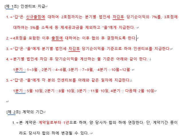 인센티브 계약서 작성을 하려고합니다.