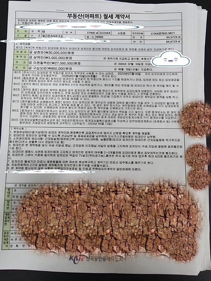 내용 판단을 위해 개인정보를 삭제한 임대차 계약서 원본을 첨부합니다.