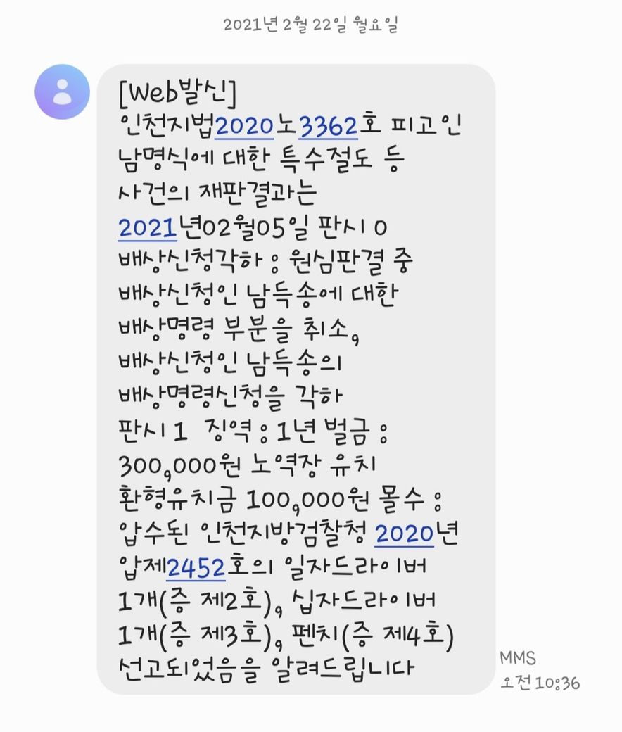질문하신 내용에 대하여 아래와 같이 답변 드립니다.위 문자 내용으로는 배상명령 신청 사항이 각하 내지 취소가 된 점에서 확인이 필요합니다.