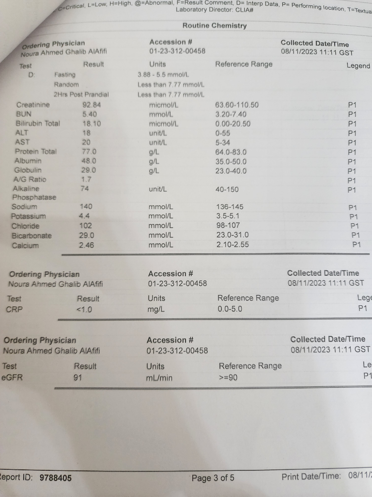 단위가 우리나리와 좀 다르긴 하지만 혈액과 소변검사 결과는 정상으로 큰 걱정은 하지 않으셔도 되겠습니다.