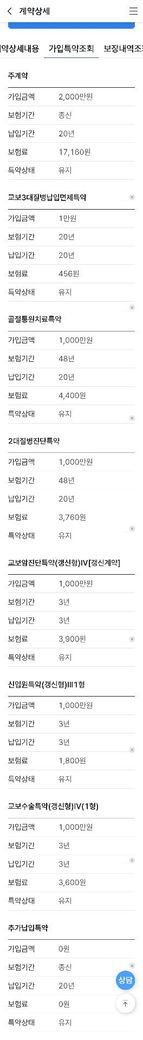 오는 4월에 특약 보험료가 약 3,000원 정도 오르네요.