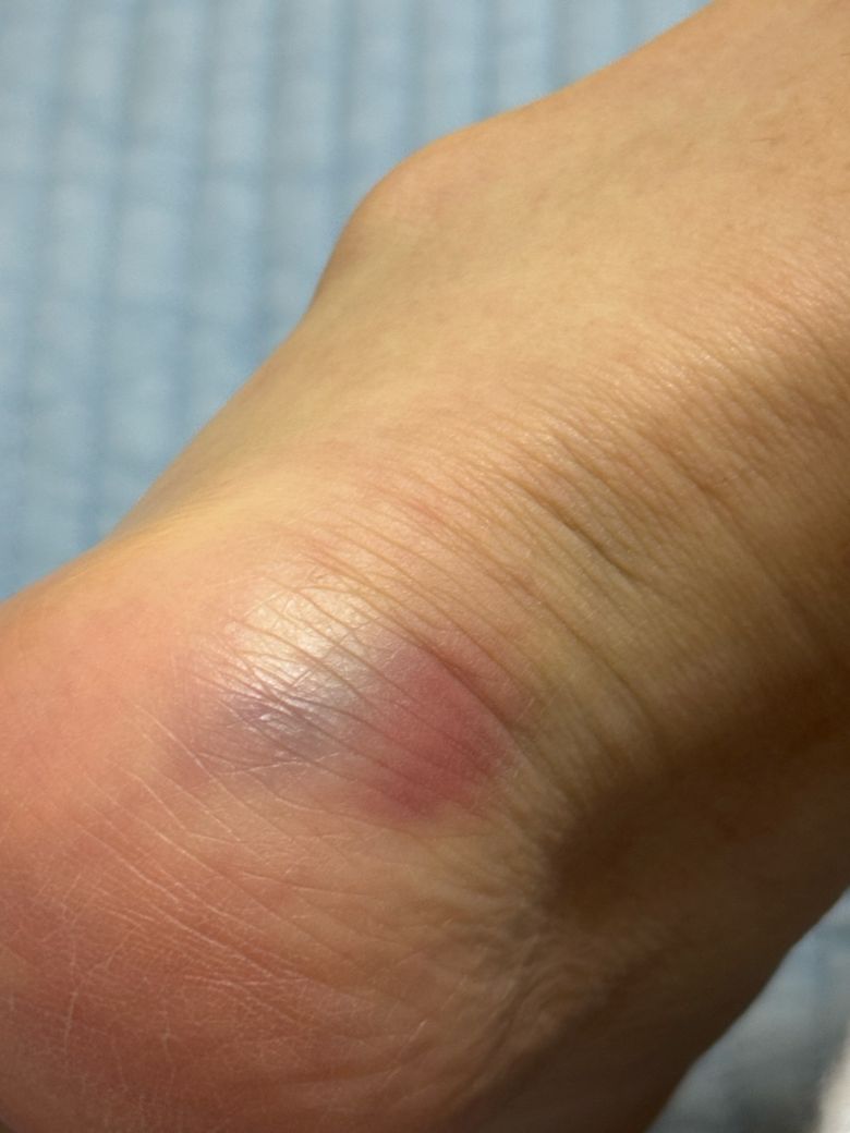 어딘가에 부딪힌 뒤 인지하지 못하였거나 지속적인 마찰이나 압박으로 인해 발생한 것일 수 있습니다.