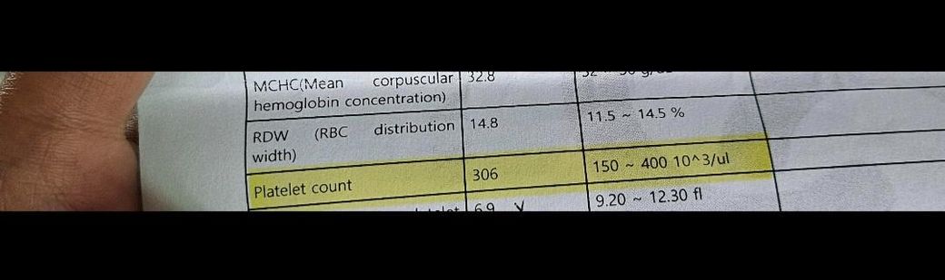 PLT수치는 이후에 한검사에서는 괜찮네요.