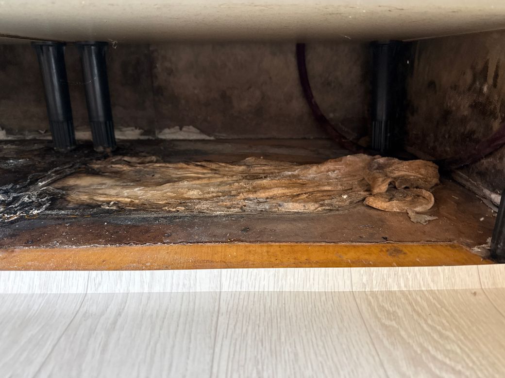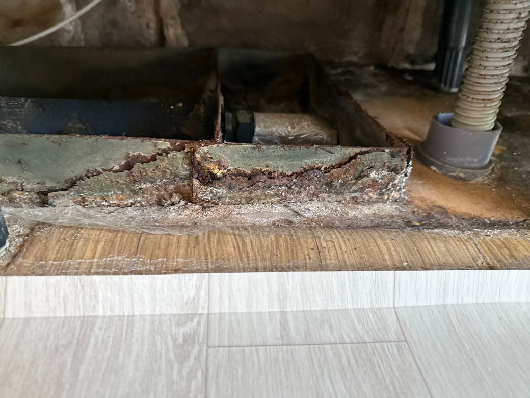 싱크 밑 걸레받이를 떼보니 썩은내가 진동하고