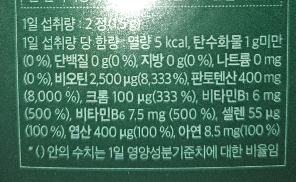 비오틴, 판토텐산을 제외한 다른 성분들은 소량 들어있는것이니 신경쓰지않으셔도됩니다.