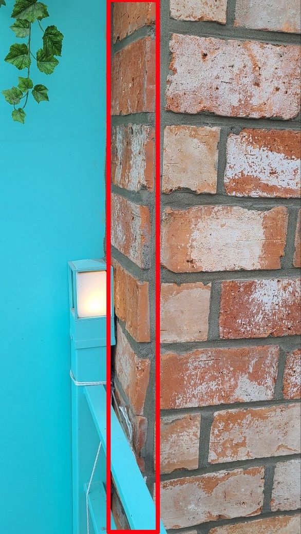 기둥 마감 중에 인테리어 업체의 실수로 2~3센지 (사진 상 좌측면 타일 두께) 만큼 침범이 발생하였습니다.