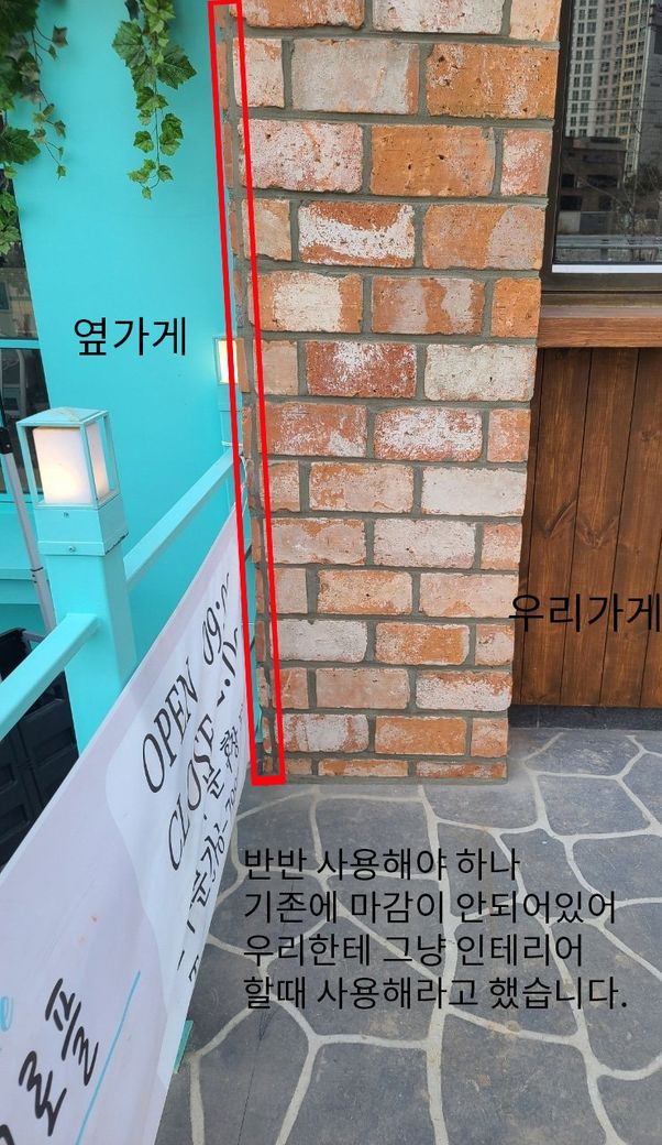 공사가 완료된 시점에서 침범에 대해 불쾌 하다며 옆집 가게에서 약 500만원의 손해 배상 청구 또는 원상 복구를 요청하며