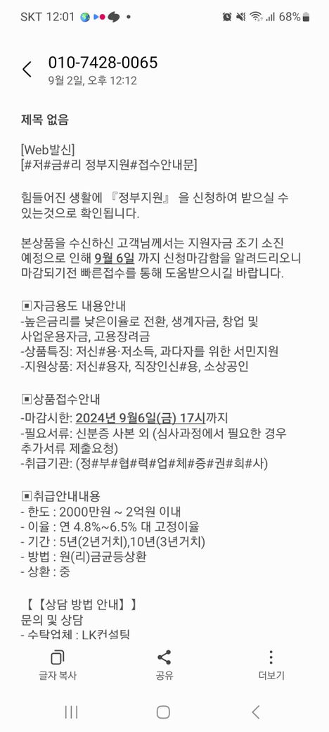 이런 문자를 많이 받습니다.다 대출사기인가요?