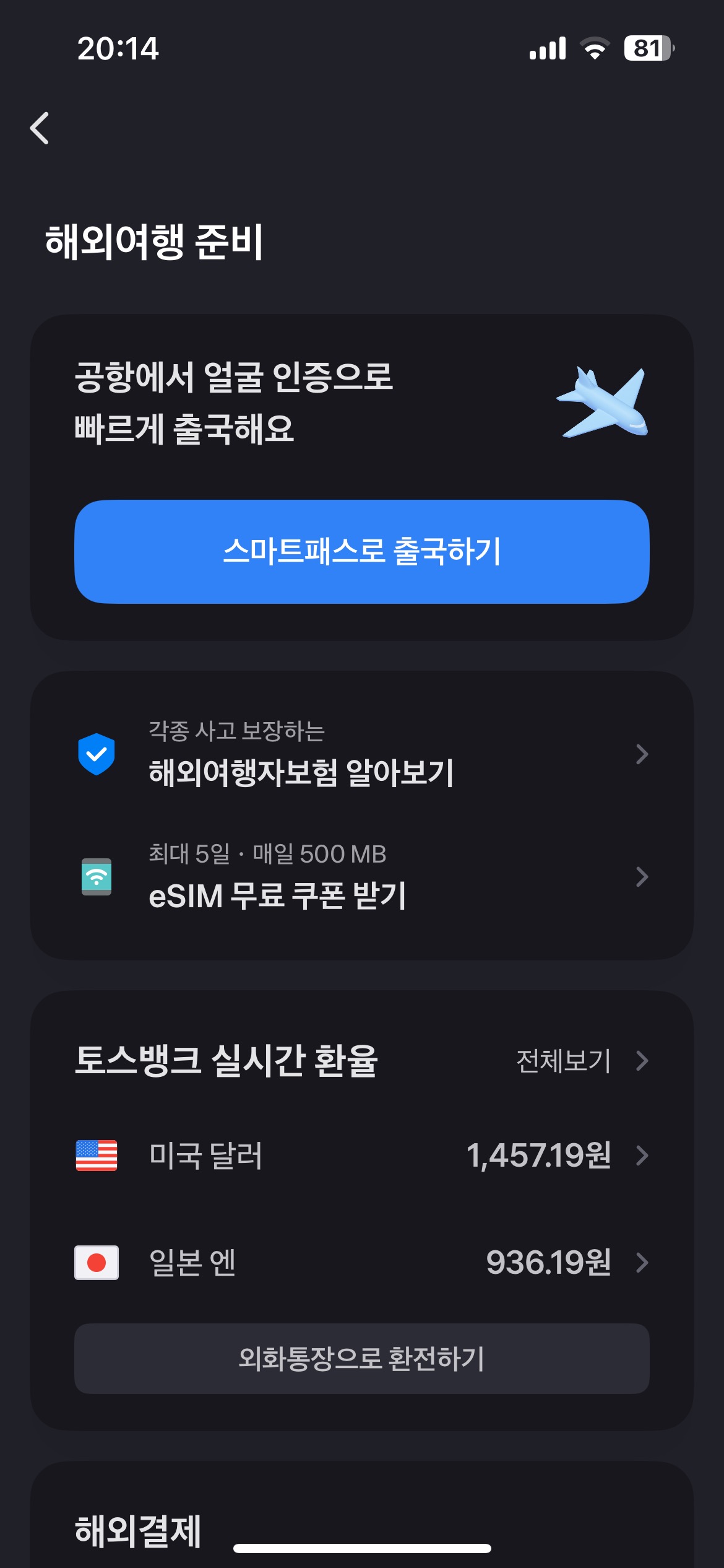 로밍보다 핸드폰 기종이 가능하다면 esim 사용이 더 간편하실수 있어요. 토스 무료 eSIM있으니 활용해보세요. 아래 사진확인해보세요
