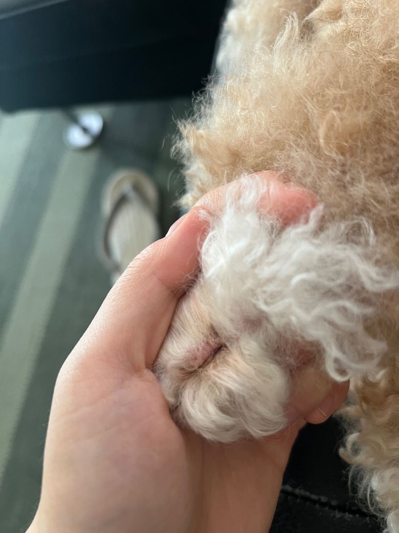 강아지 발 바닥 틈이 빨갛게 됐어요. 발등? 발가락? 사이도 빨갛고 갈색 딱지 같은게 발 털에 엉겨붙어 있습니다. 날이 더워서 그런 걸까요? 원인을 모르겠습니다.